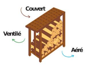 Le bois doit être entreposé dans un lieu sec, ventilé et à l’abri de la pluie comme du vent. Nous recommandons de stocker votre tas de bois sur une palette ou un support, afin de favoriser la circulation de l’air et d’éviter que les bûches n’absorbent l’humidité du sol. Si possible, orientez votre tas plein sud pour accélérer le séchage naturel.